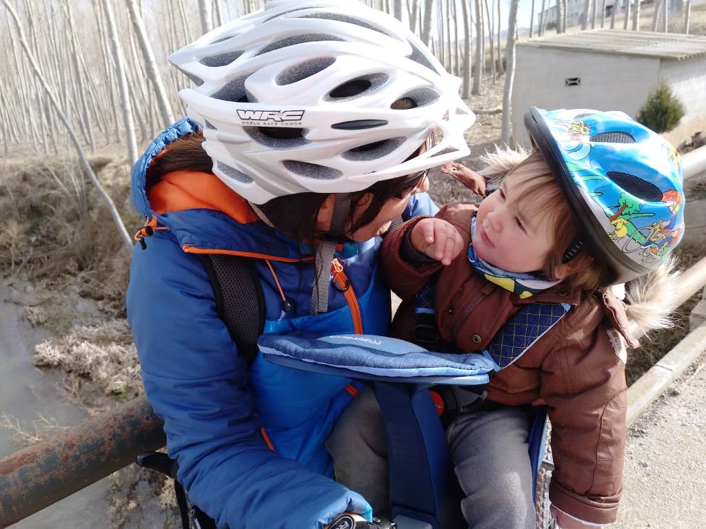 Seguimos de celebración y aprovechamos con ganas que está despejado aunque con fresco para estrenar uno de los regalos de Oier, su sillita para la bicicleta. Una weride fronsafe en la que el enano ve todo en primera persona y puede vivir de manera más real lo que es llevar una bicicleta. La duda de si le gustaría se disipa los veinte primeros metros en los que va loco de alegría. Al final una paseico la mar de majo en el que avistamos bastantes grullas. Jiloca al natural ;-)